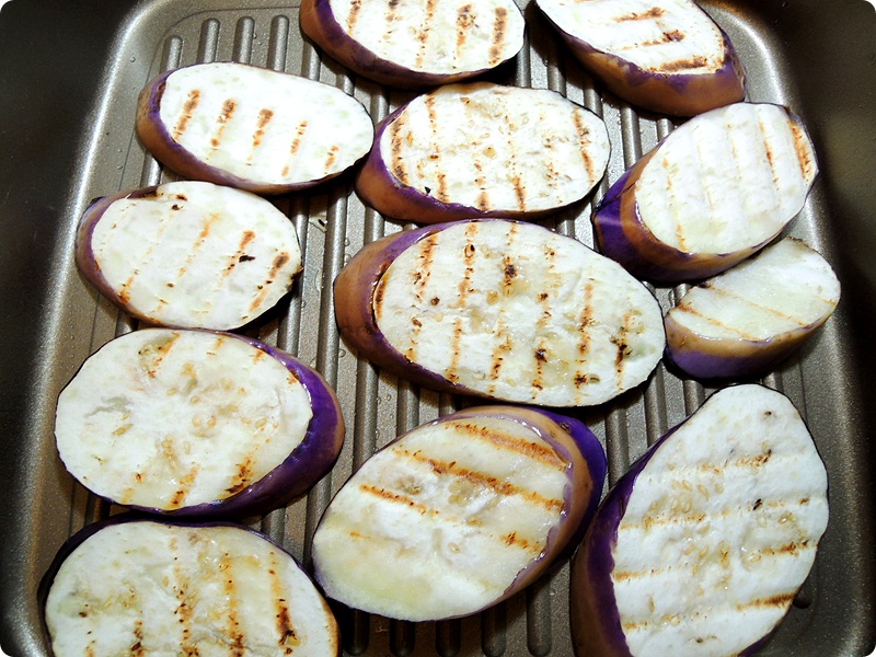 On a grill pan, add some oil and cook the egg plants