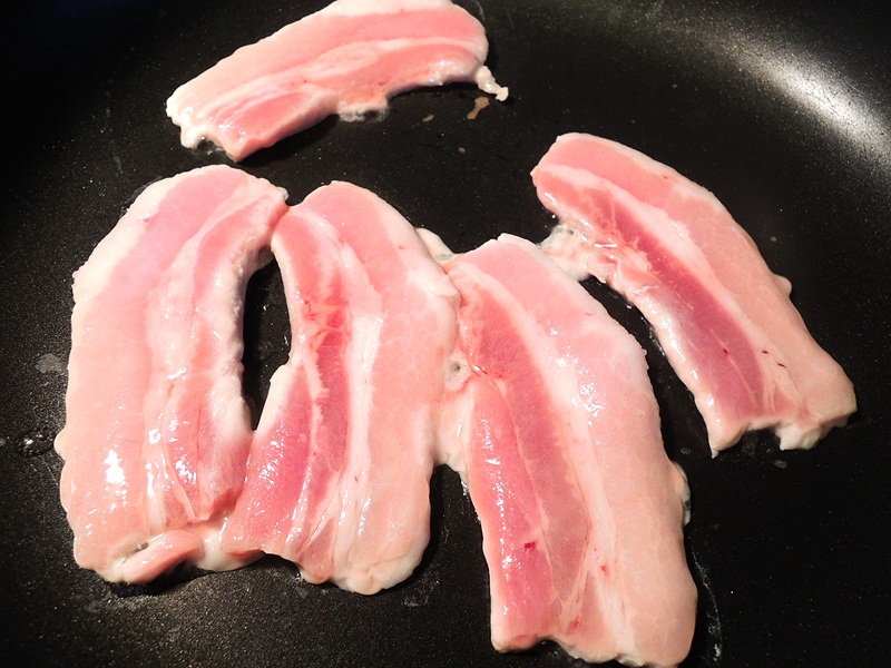 Don't add cooking oil, because the pork fat will cook the meat naturally.