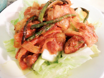#2. Make 제육볶음 (jeauk bokkeum), spicy stir-fried pork with vegetable.