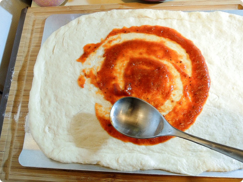 Mix all of the dough ingredients and make the ball. Put the dough in a warm place about an hour.