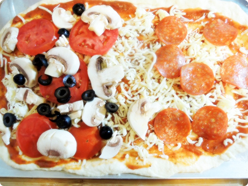 Toppings~ My crust was so big, so I made two different pizza~