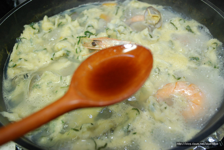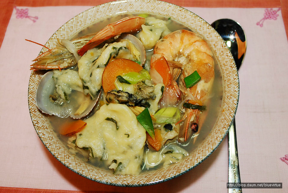 굴, 바지락과 새우의 맛이 그대로 느껴지는 해물수제비.....
