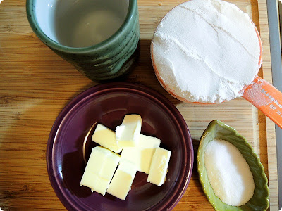 パイ生地小麦粉1カップ2大さじ、砂糖1/2スティックバター(冷)いくつかの氷のような水