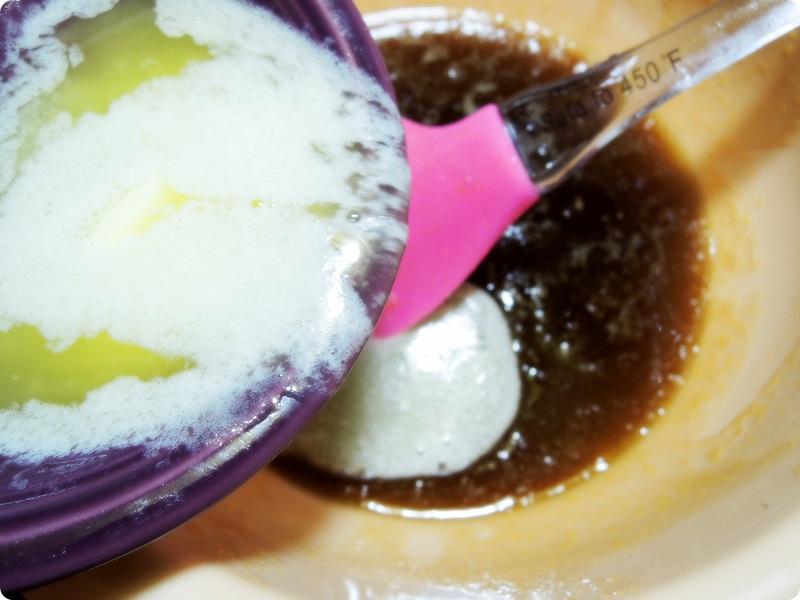Add the cooled nuts in to the batter.