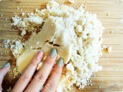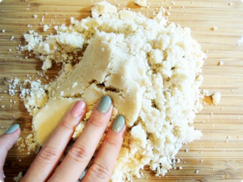 Add small amout of cold water and form a dough (slightly crumbling)