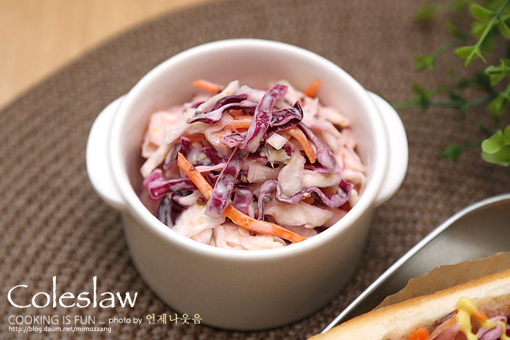 이렇게 만들어놓은 코을슬로는 샐러드처럼 치킨이나 다른 일품요리의 찬으로 드셔도 맛있구요...
