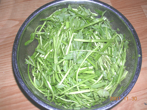 3. 미나리는 깨끗히 씻어서 5센티 정도의 길이로 썰어준다.