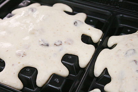 잘 달군 와플메이커에 반죽을 적당히 붓고,