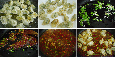 3. 그런다음 육수를 붓고 튀긴 만두를 넣고 국물이 반정도로 졸아들 때까지 볶아줍니다.