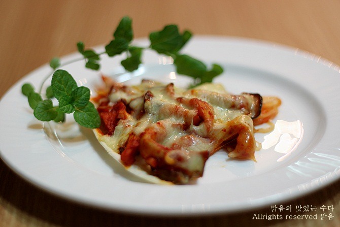예열된 180도 오븐에서 치즈가 녹을 정도로 구워주세요.