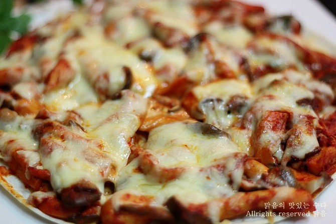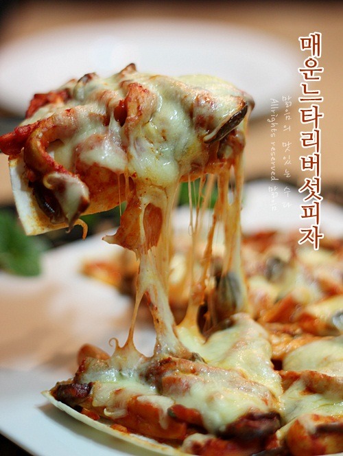 매운느타리버섯무침을 가지고 피자를 만들려면
