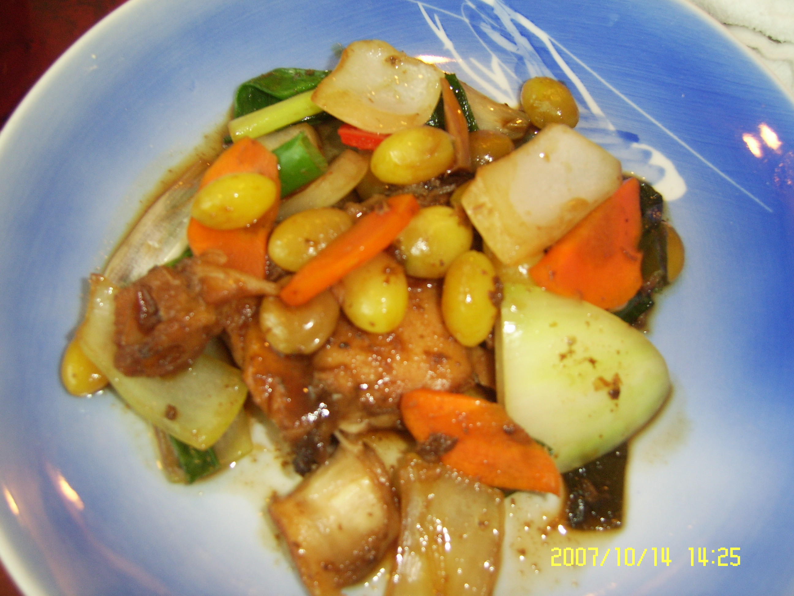 그리고 여러야채를 간장과 올리고당 물을 2:0.3:3 비율로넣고 마늘과함께 각종야채와 볶아주세요...야채는 기호에맞게 더첨가하셔두됩니다...