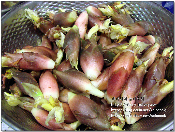 양애는 (양하)는 향이 진하여 고기와 채소, 나물류등 어떤 재료와 조리를 하여도 궁합이 좋다.