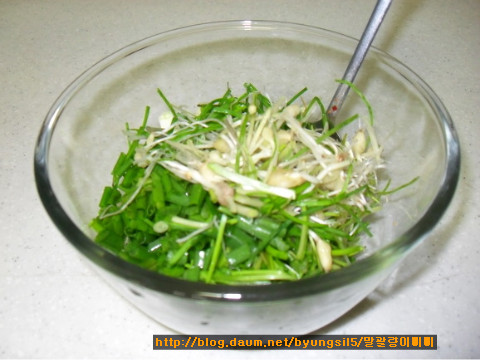깨끗이 씻어둔 달래를 먹기좋은크기로 썰어주고 ......