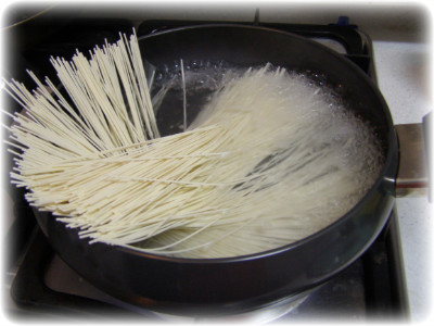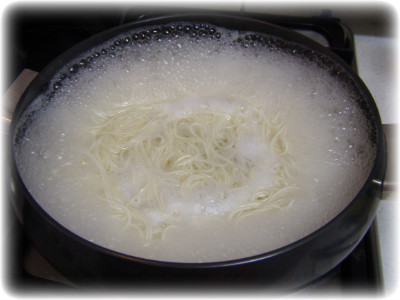 국수가 익었는지 보려면 한가닥 정도 건져서 찬물에 씻어 먹어보시고