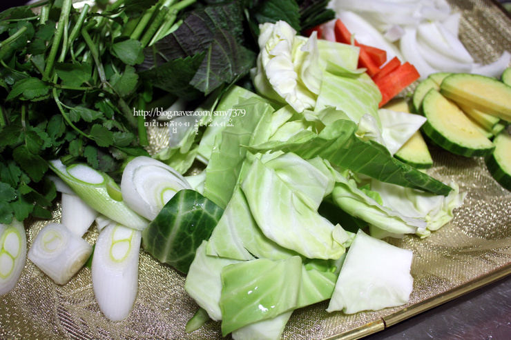 애호박 + 당근 + 양배추 + 양파 + 깻잎 + 미나리 + 대파