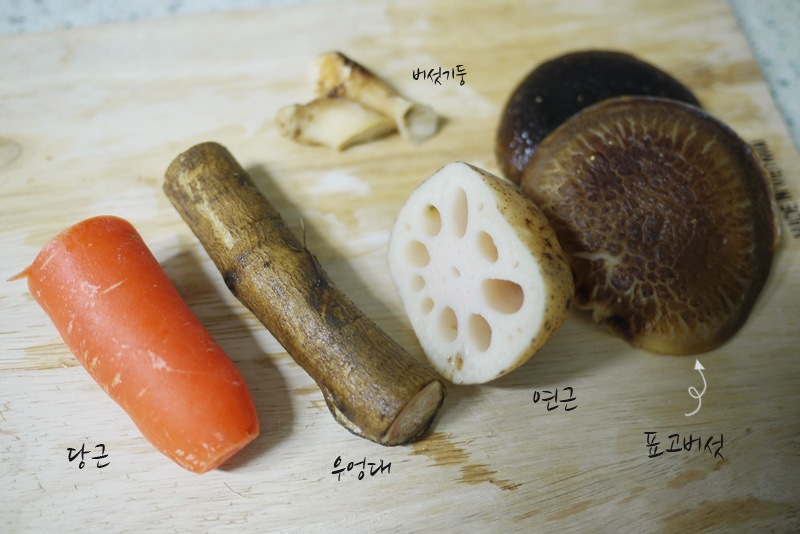 꼬독꼬독 씹히는 표고버섯 맛도 좋고, 우엉대와 연근의 향도 좋았어요.