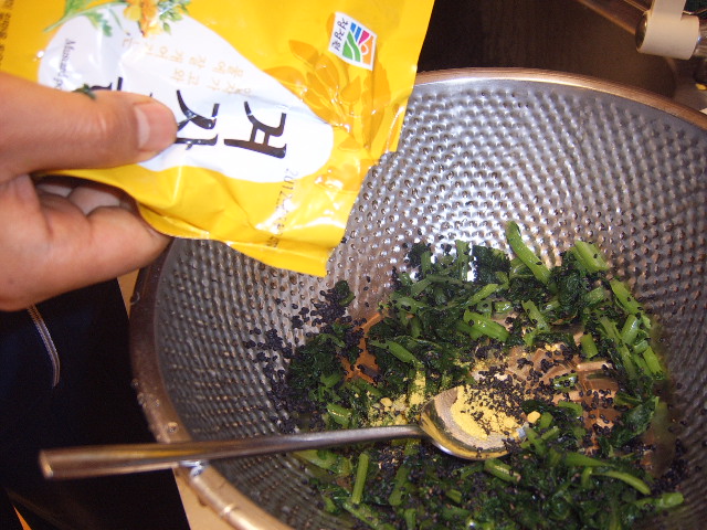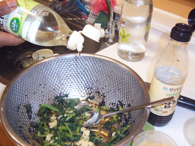 검정깨 참기름 다진마늘 넣고 조몰조몰