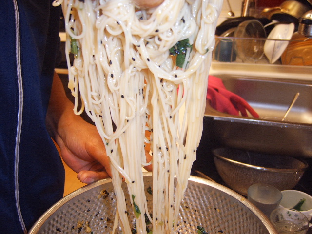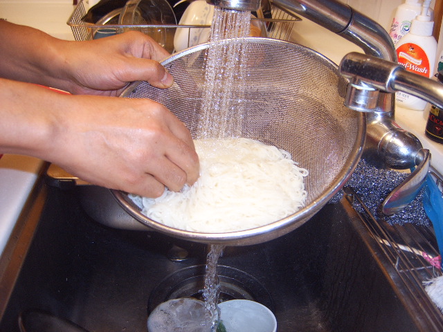 국수를 끓는물에 투명해질떄까지 끓여서 찬물에 씻으세여~