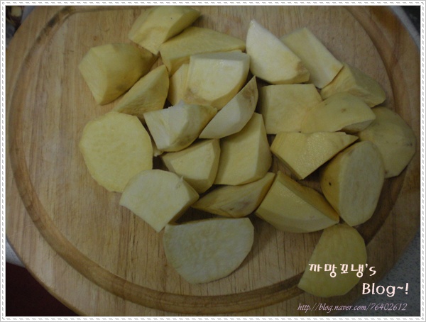 예쁘게 깎아서 맛탕모양으로 듬성듬성 썰어줍니다.
