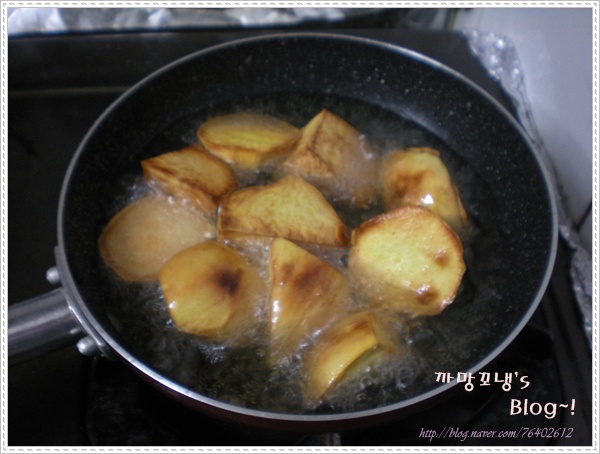 엄마가 먹어도 살이 계속 빠진답니다..신장이 안좋으셔서 그렇답니다. 계속 살이 빠지기 때문에 신장에 무리가 되지 않으면서 칼로리를 보충할 수 있는 음식을 자꾸 생각해야한답니다....그러다가 밥으로 보충되지 않는 칼로리를 맛있게 보충할 수 있는 맛탕이 생각났어요~~~