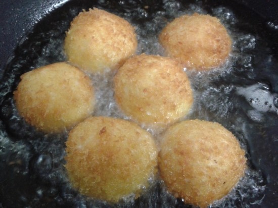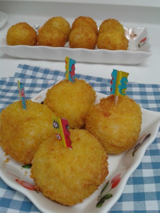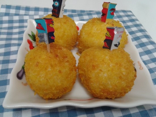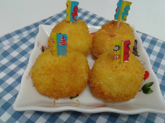 재료: 감자 2개, 비엔나 소시지 8개, 밀가루, 달걀1개, 빵가루, 소금 약간,