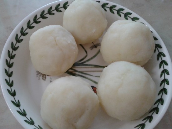 1. 감자를 위생봉지에 넣어 전자렌지에 6분정도 돌려 익힌다