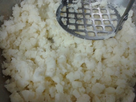 감자를 으깨서 소금간을 약간 해주세요 ( 으깨는 도구로 하면 더 간편해요)
