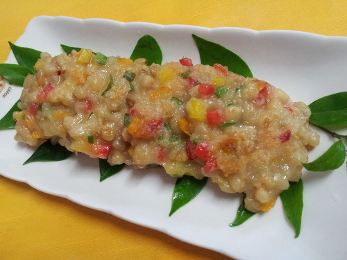 너무도 아름다운 오색빛깔 "옥수수를 넣은 감자 양파전"이죠~