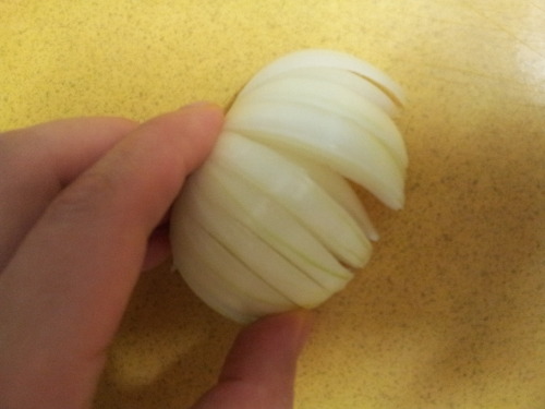 팁: ※ 양파는 반으로 잘라 꽁지부분까지 칼집을 넣지말고 조금 여유를 둔 후 칼집을 세로로 촘촘하게 넣은후 가로로 썰면 쉽게 썰려요.