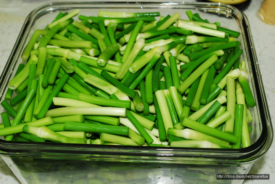 신랑이 먹기 좋게 마늘쫑을 썰어줬어요.
