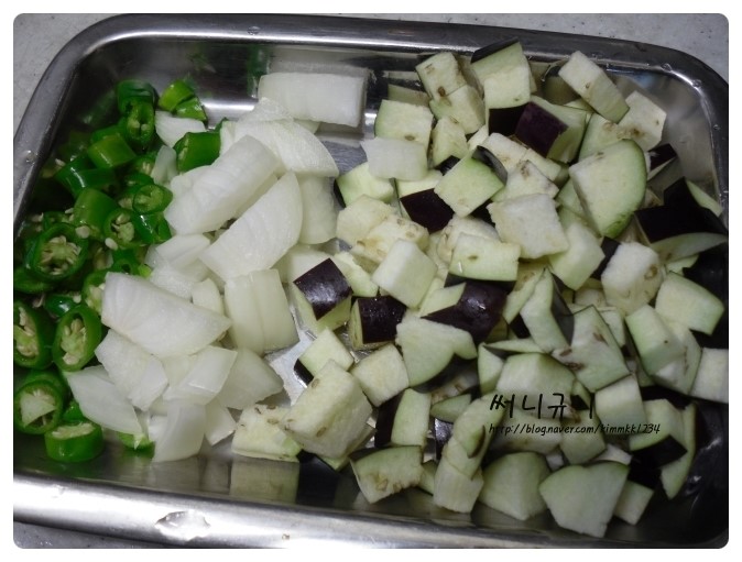 양파, 가지, 청양고추를 넣고 볶아주다가