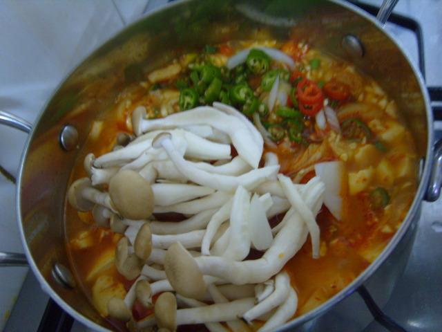마지막에 버섯과 청량고추,대파를 넣고 한번더 끓여주면 완성.