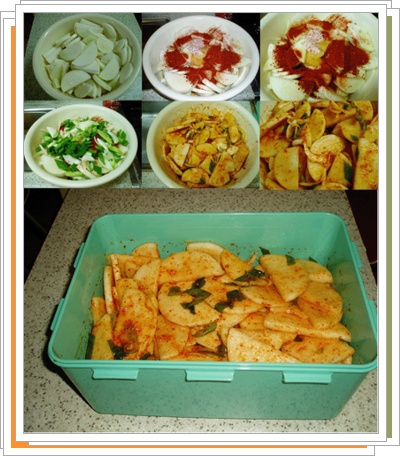 무. 대파.고추가루. 새우젓, 매실원액, 멸치액젓