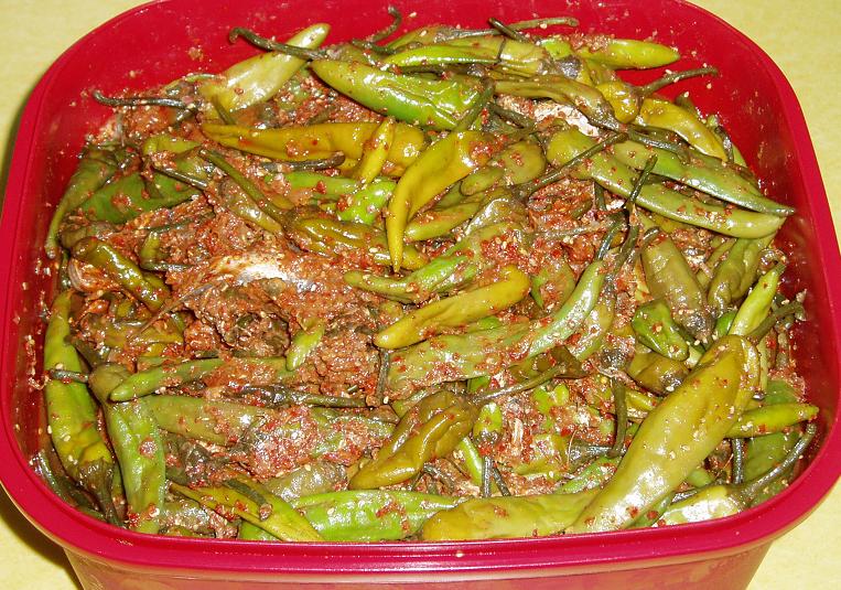 버무린 고추는 한달 정도가 되면 이렇게 숙성이 되어요.