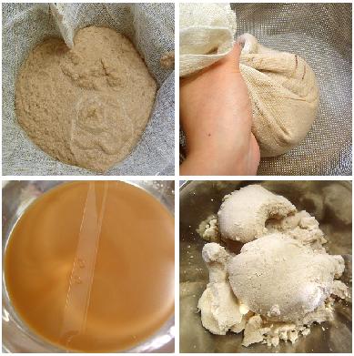 4. 밑바닥에 가라앉은 앙금덩어리를 숟가락으로 퍼서 냄비에 담은후 앙금의 5배정도의 물을 부어주세요.