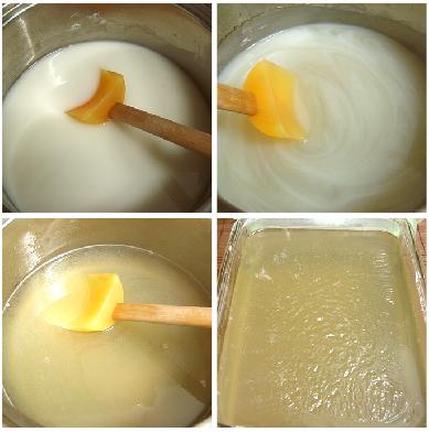 4. 15분정도 중약불에서 저어주며 끓이다가 통에담아 실온에서 굳힌후 냉장실에서 굳히면 완성~!!