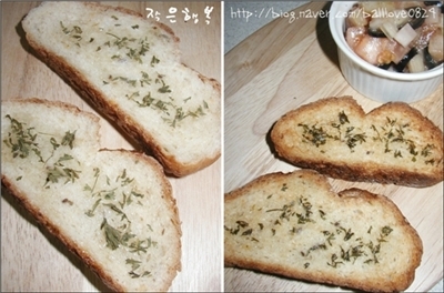 바게트에는 다진마늘, 올리브오일, 파슬리가루를 섞어 바르고