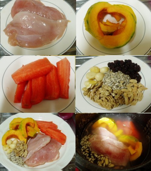 , 호도, 호박씨, 건포도, 당근 반개, 통마늘6쪽