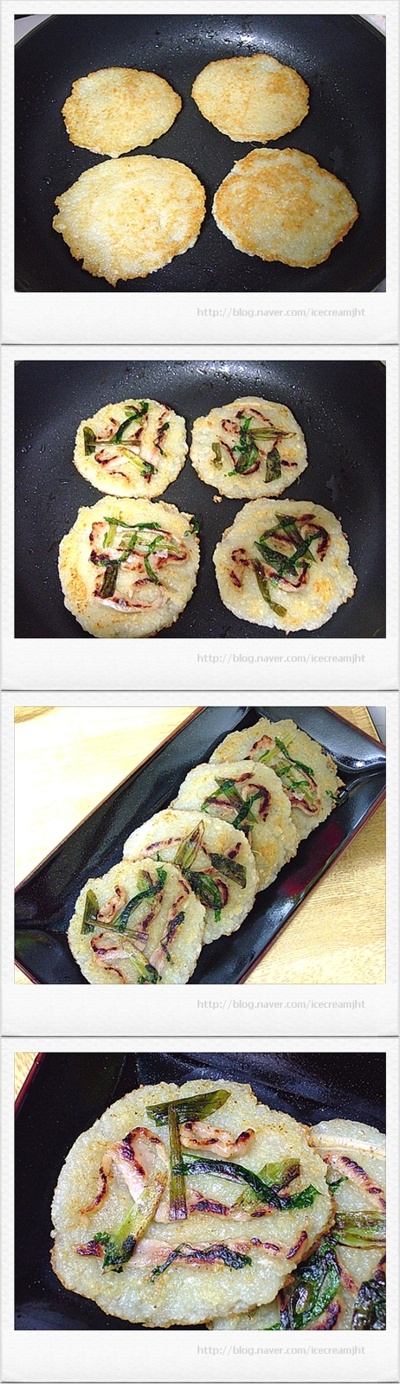 후라이팬에 기름을 두르고 숟가락으로 한수저씩 떠서 올린후