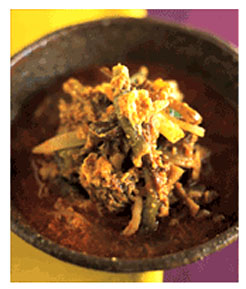 대파 300g, 고사리·숙주 70g씩, 불린 토란대(또는 머우대)·느타리버섯·당 면 100g씩, 달걀 1개, 쇠고기육수(쇠고기(양지머리 또는 홍두깨살) 500g, 물 15컵, 양파 ½개(100g), 마늘 30g, 생강 10g, 대파 ½대, 통후추 1작은술, 무 200g), 양념장(올리브오일·다진 마늘 ½컵씩, 고운 고춧가루 ⅔컵, 다진 생강·국간 장(또는 액젓) 2큰술씩, 꽃소금 ½큰술, 후춧가루 약간)
