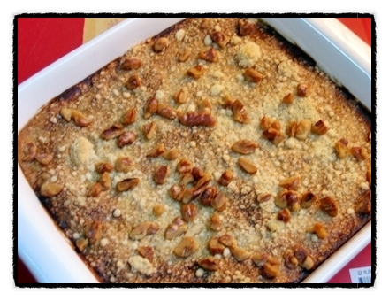 설탕, 밀가루, 버터를 섞어 크럼블 형태로 만든 다음 호두를 섞어