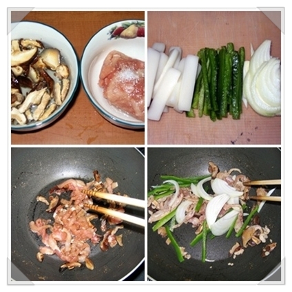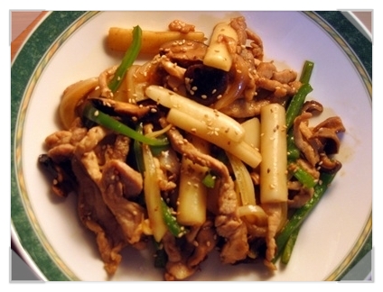 떡볶이떡 80g, 돼지고기 잡채용 100g, , 말린 표고버섯 한줌, 피망 반개, 양파 1/4개, 식용유 적당히