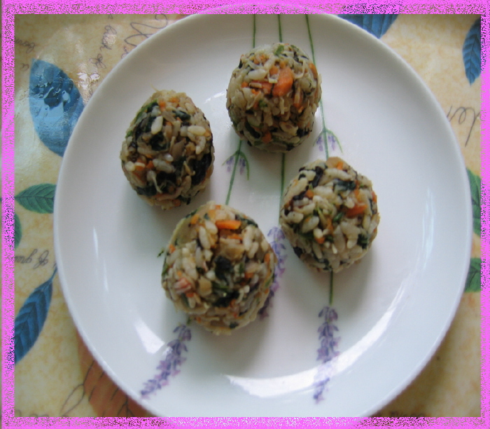 이렇게 주먹밥을 해주면 시금치랑 야채도 많이 먹는다.