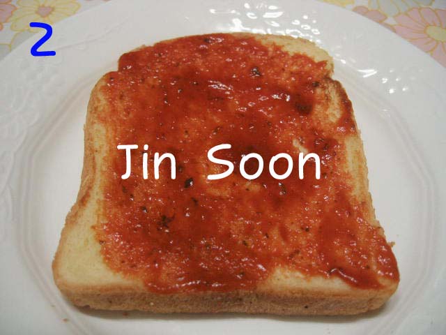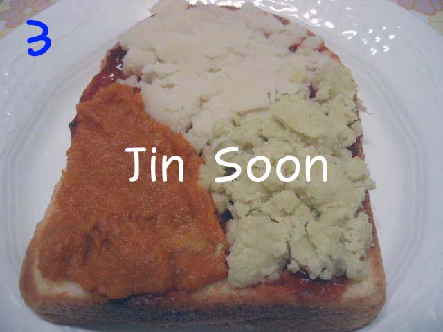 7 구운 식빵에 피자소스를 골고루 바르고 으깬 감자,고구마,단호박을