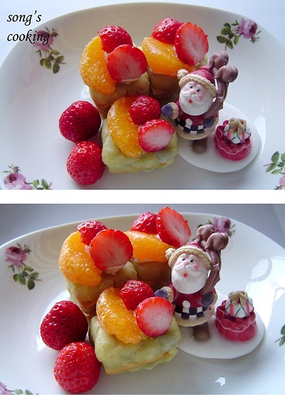5. 위에 생크림을 조금 얹고 원하는 과일을 송송썰어 얹어주면 완성!![