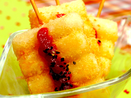 떡볶이떡 빵가루 검은깨 식용유 꼬치 계란, 칠리소스 고추장 물엿