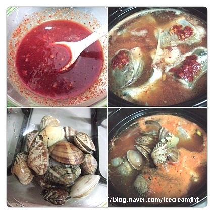 바지락도 깨끗이 헹구어 같이 넣어주고 다시 한번 끓여준다