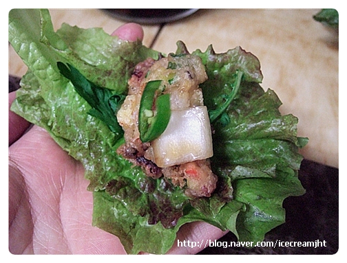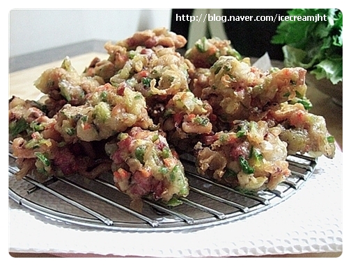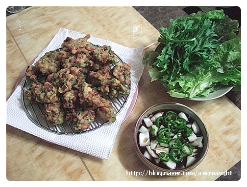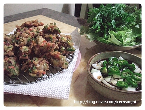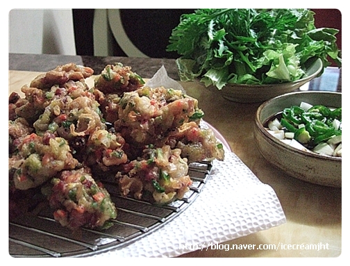 튀김가루, 멸치액젓, 후춧가루, 참기름, 간장, 상추, 쑥갓, 식용유