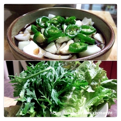 상추와 쑥갓을 깨끗이 씻어 물기를 제거후 준비한다
